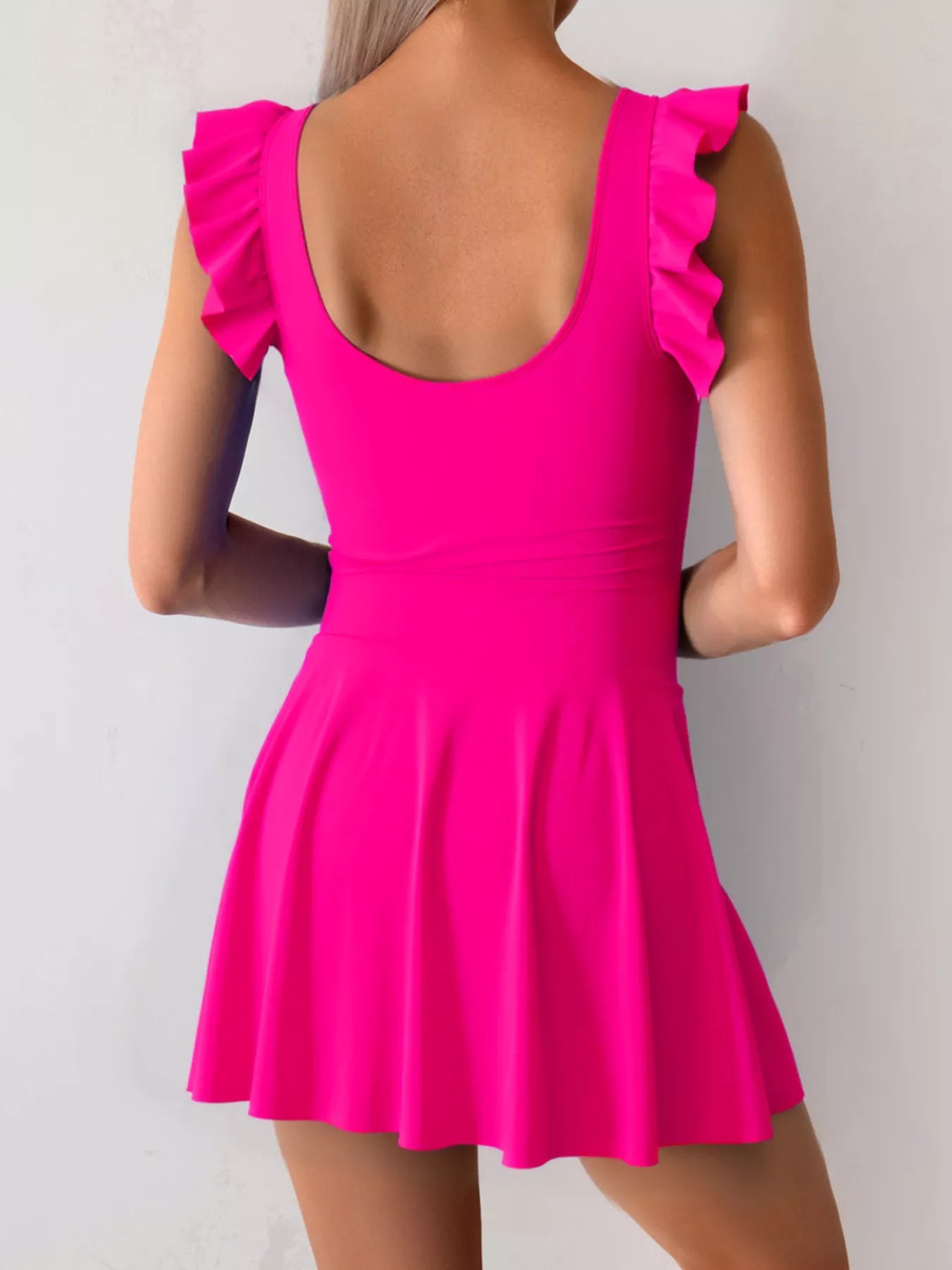 Ruffled Sleeve One-Piece Swim Dress