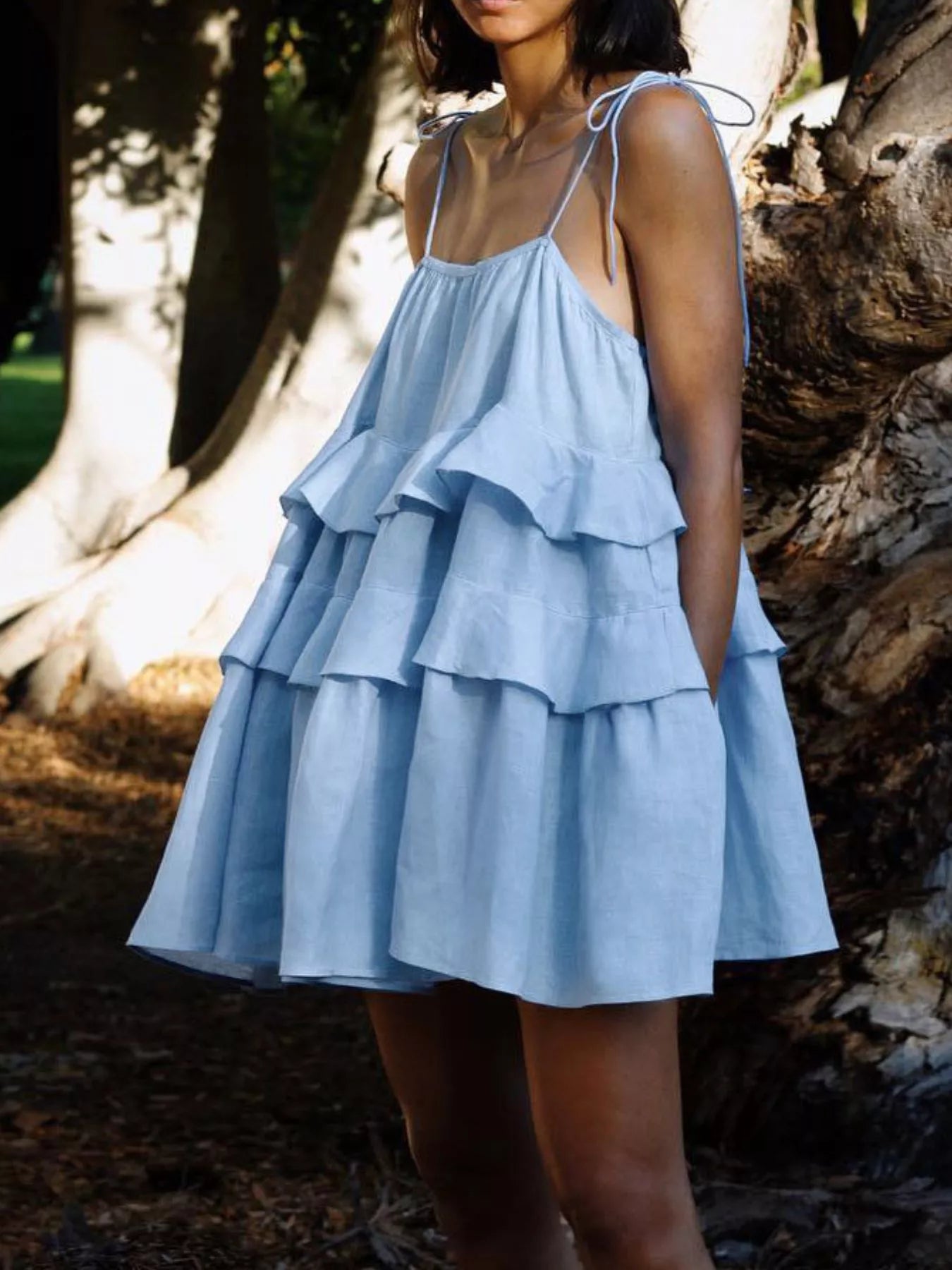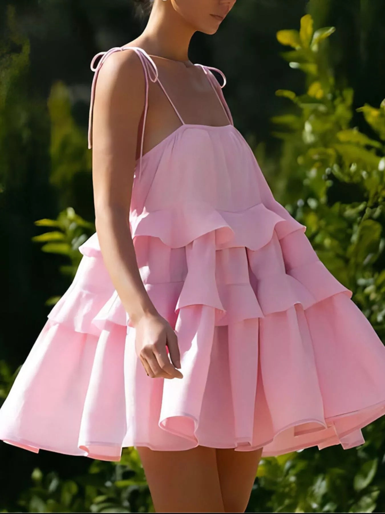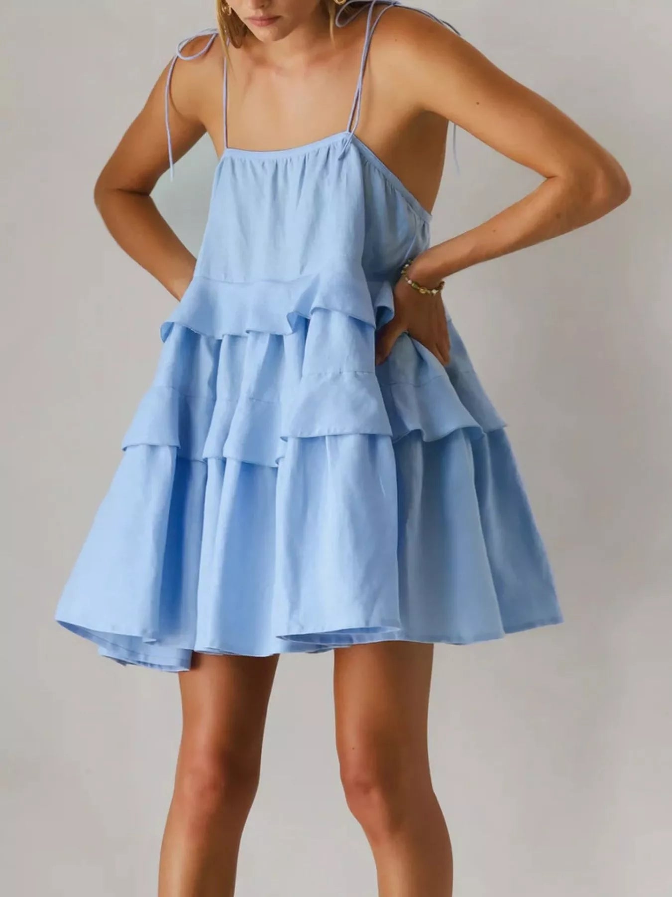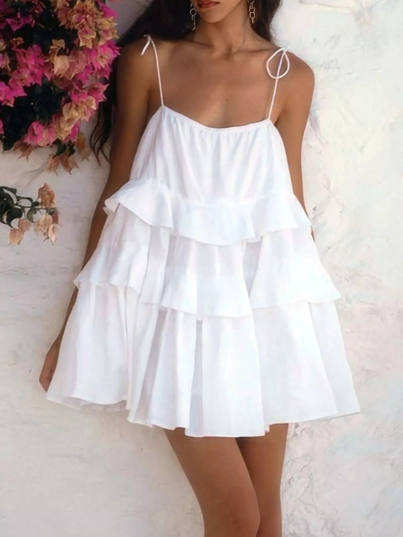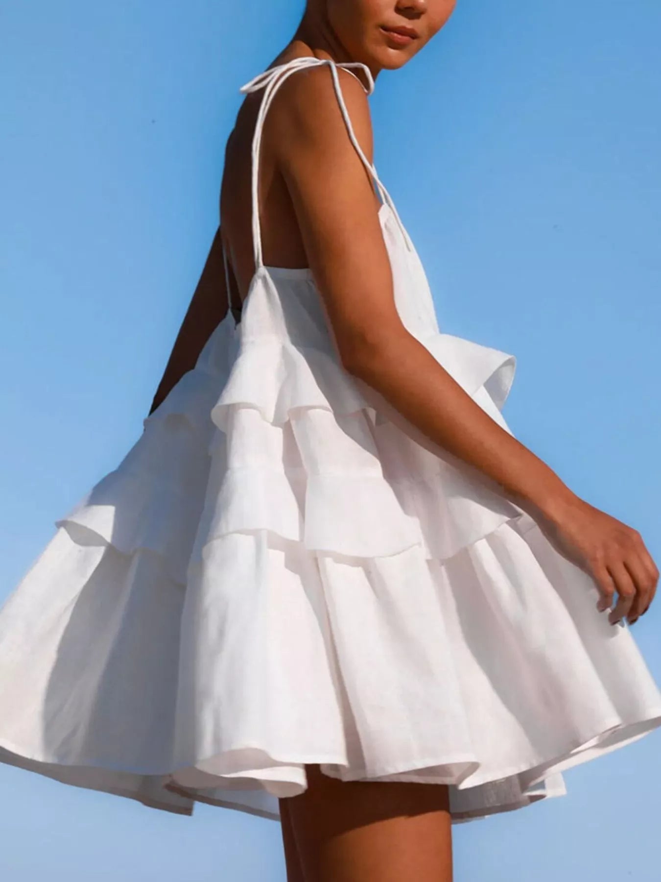 - Features:Tiered,Tied,Ruffled