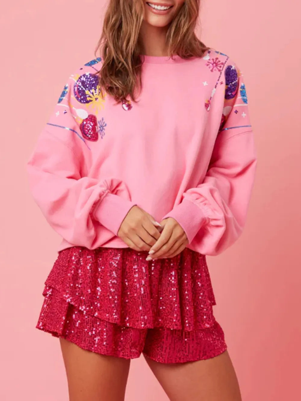 Sequin Round Neck Dropped Shoulder Sweatshirt