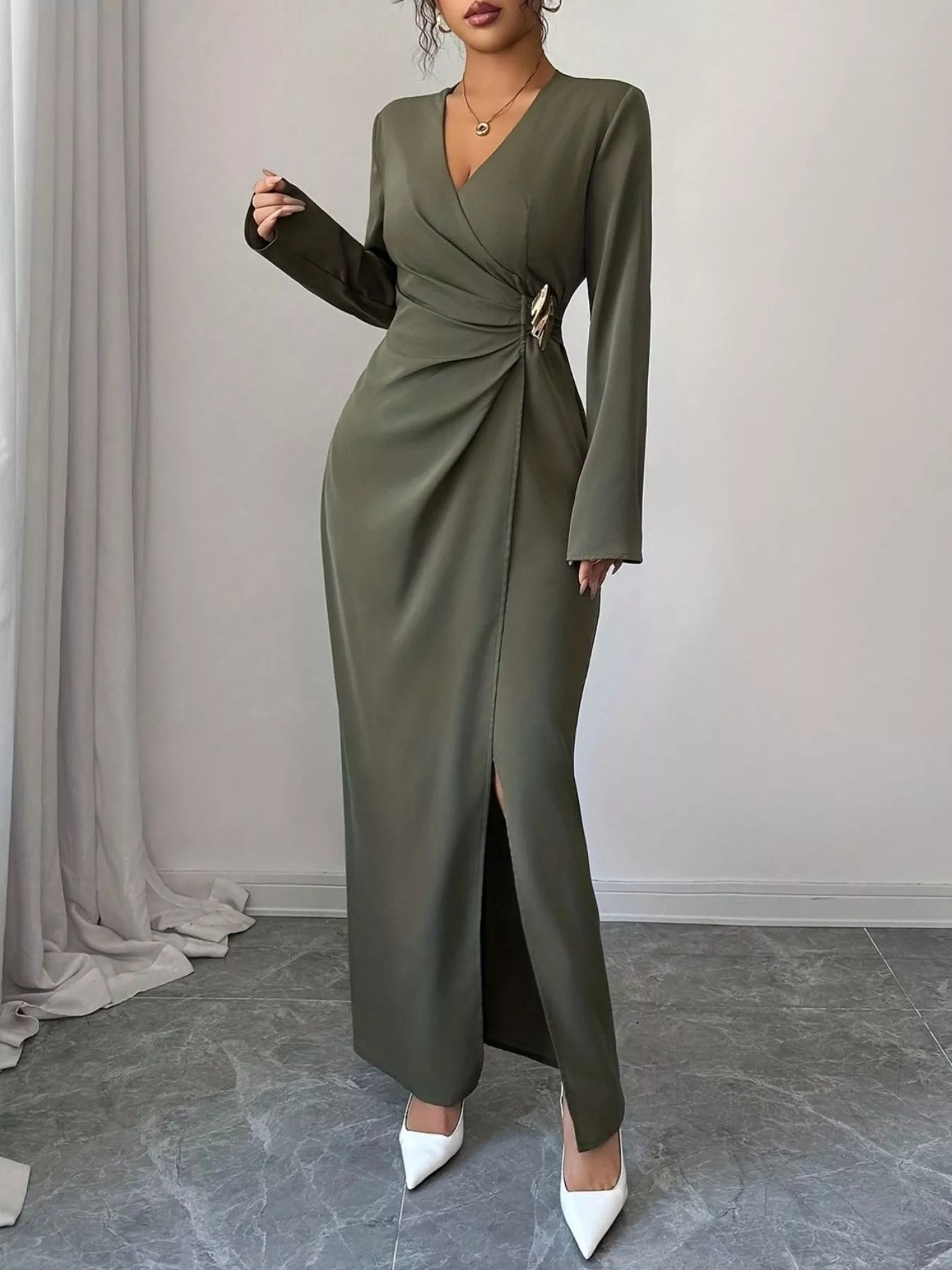 Slit Surplice Long Sleeve Maxi Dress