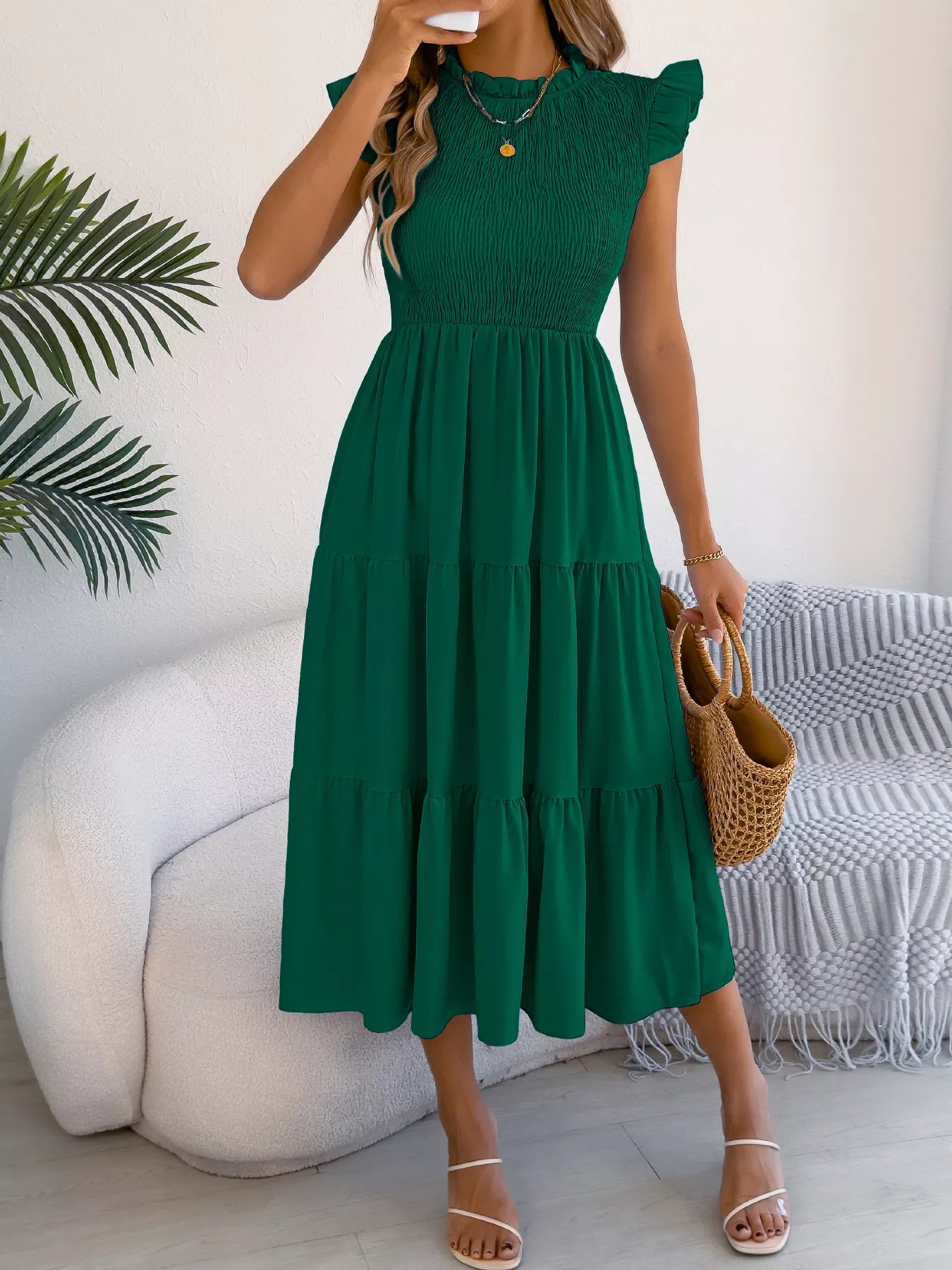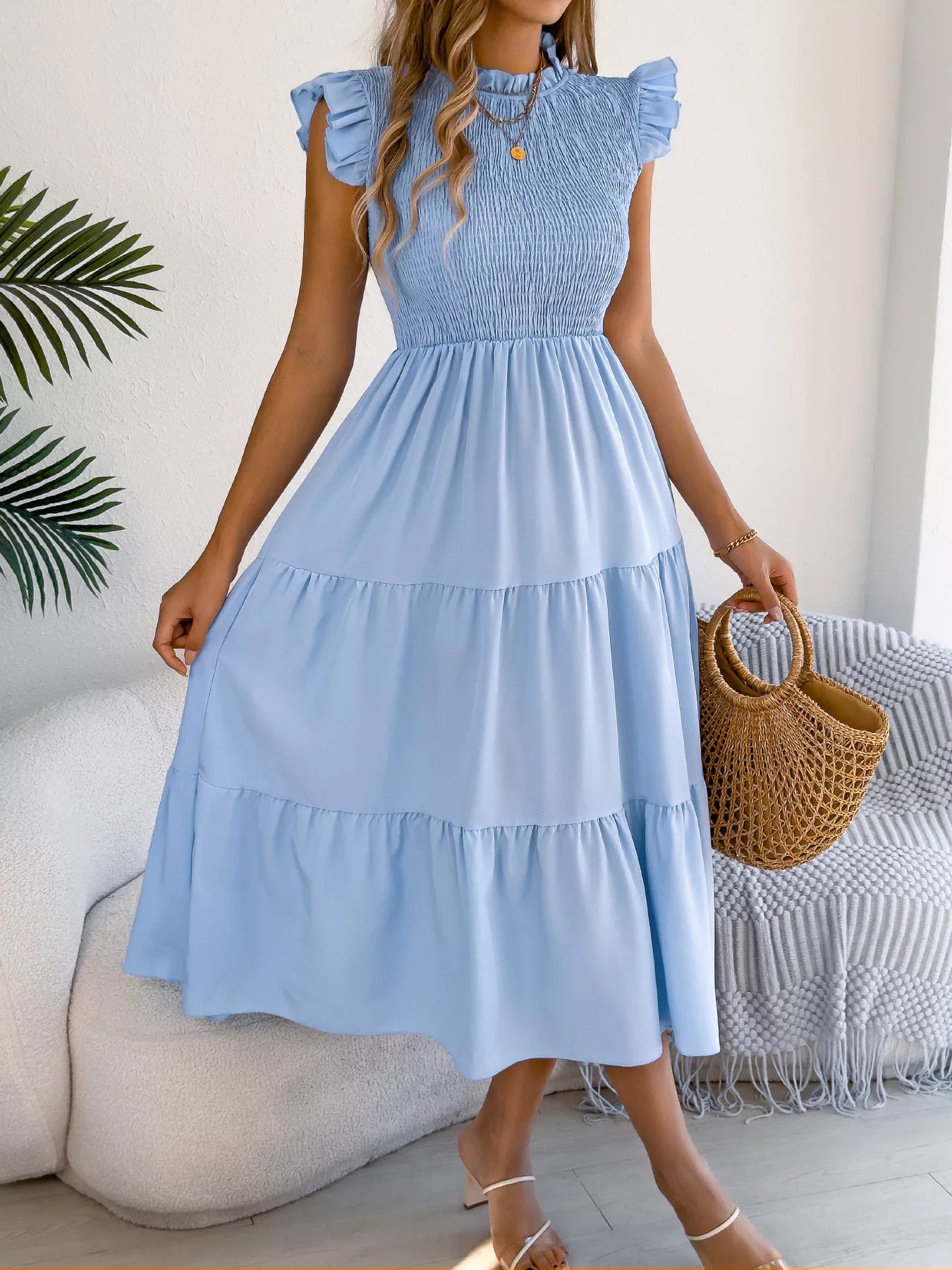 - Features:Tiered,Ruffled,Smocked
