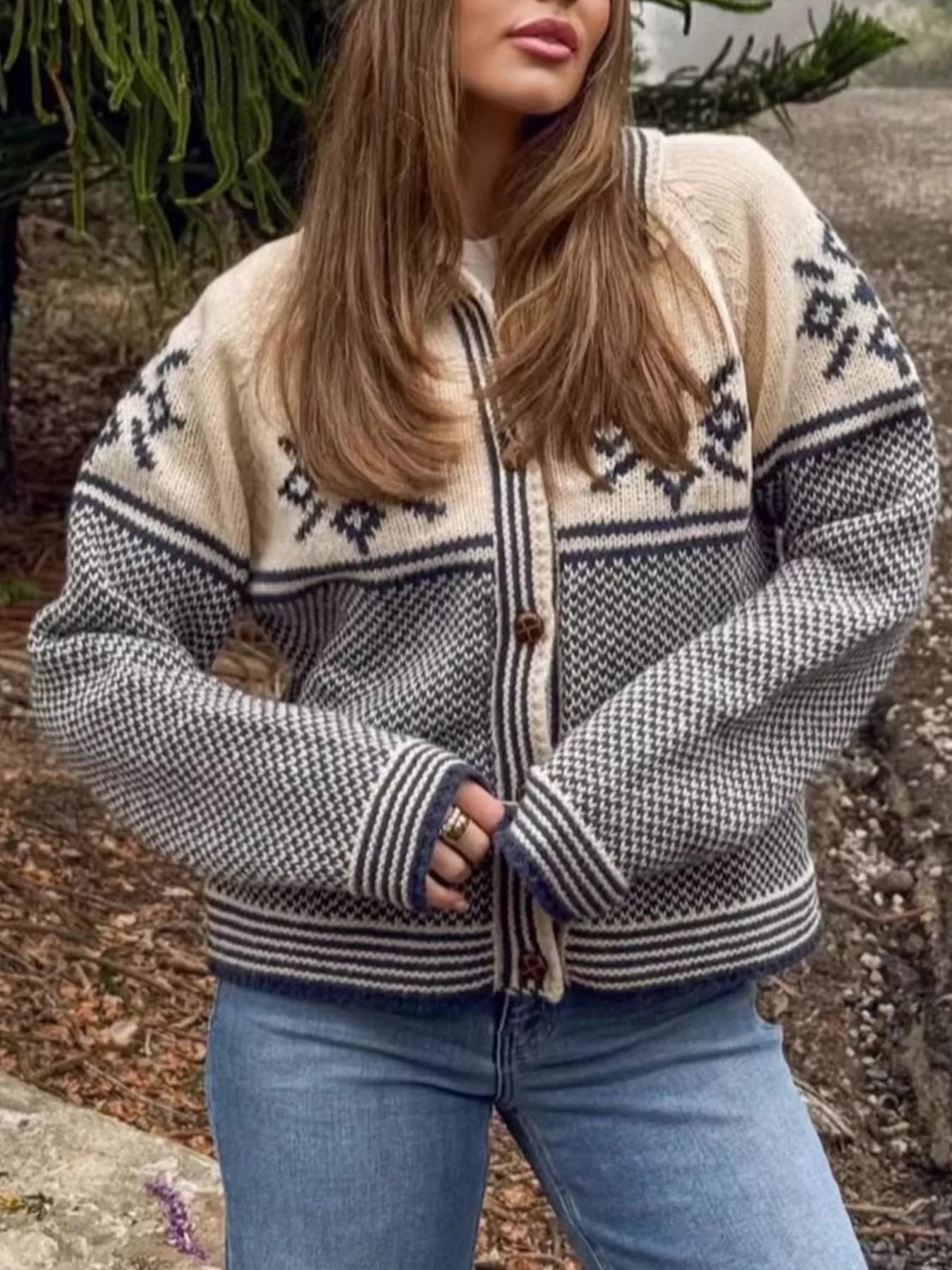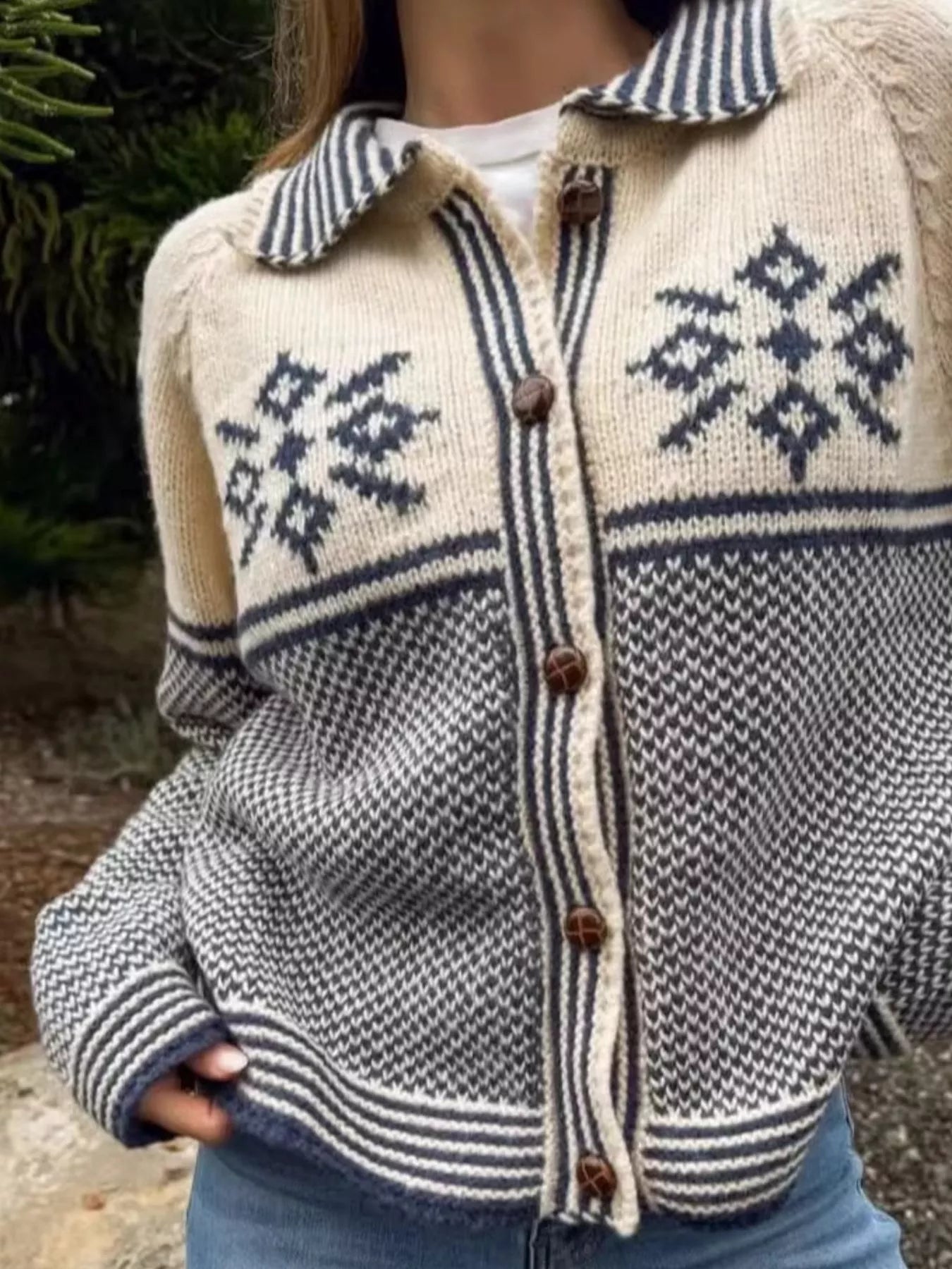 Snowflake Pattern Knit Cardigan