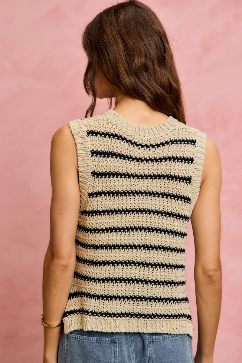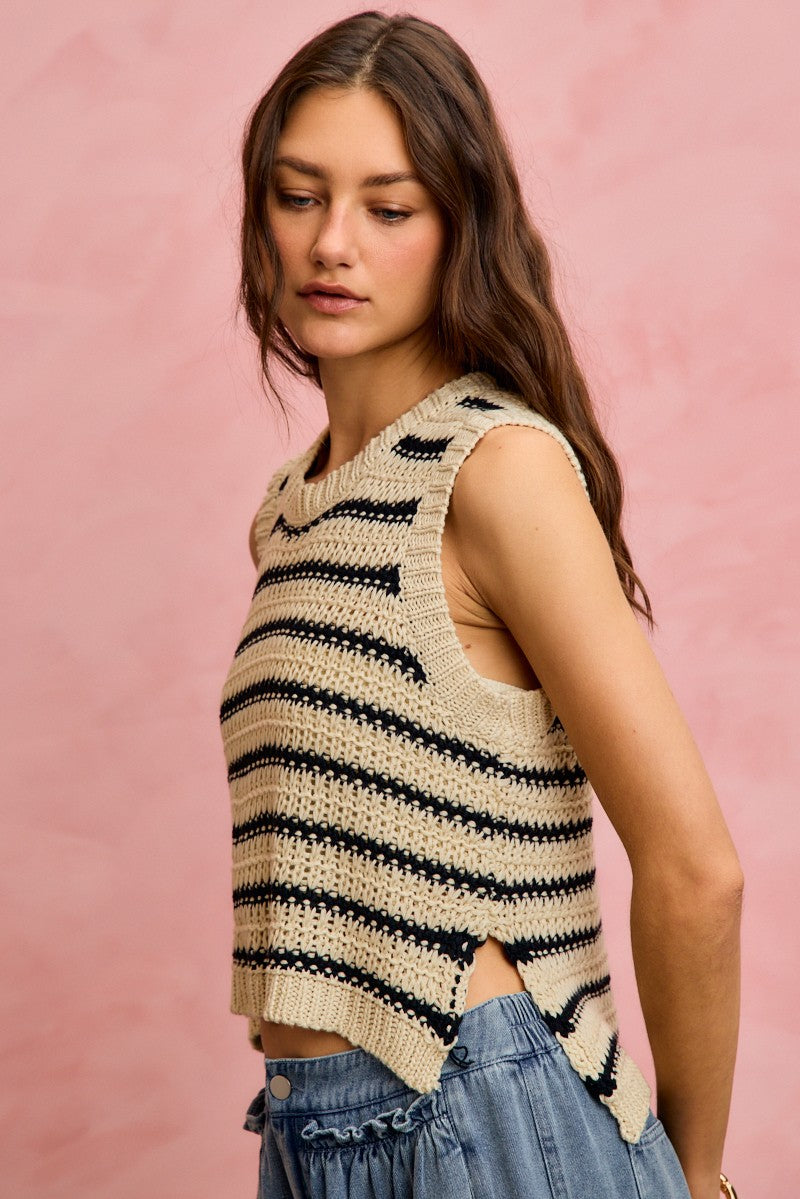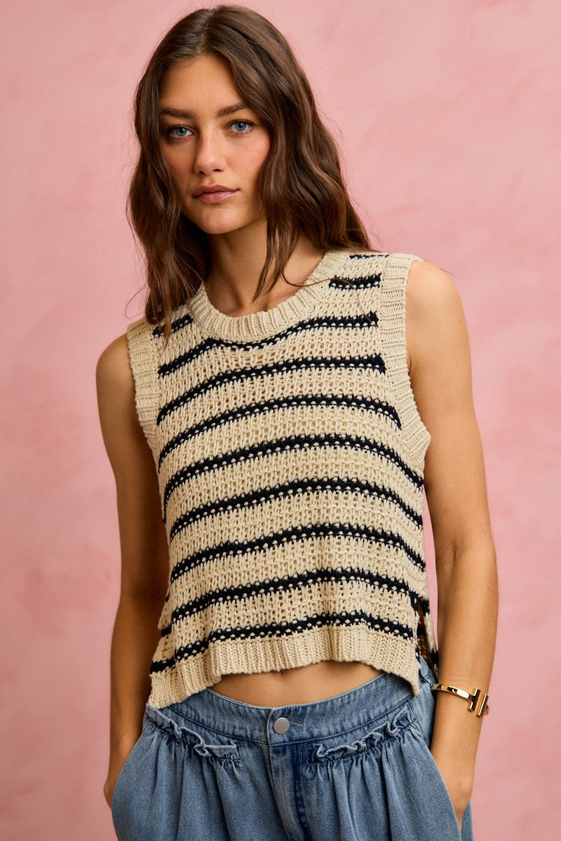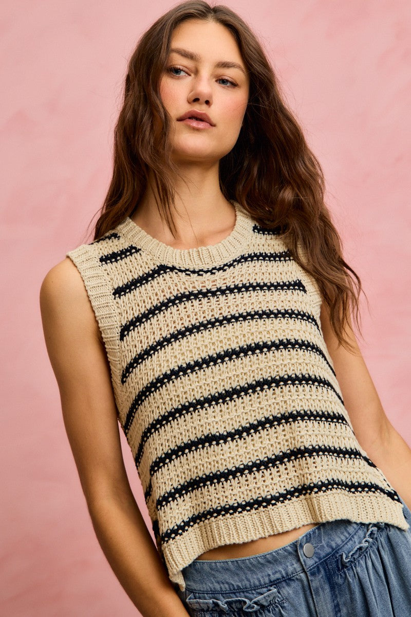SO ME Low Gauge Textured Stripe Sleeveless Sweater Top