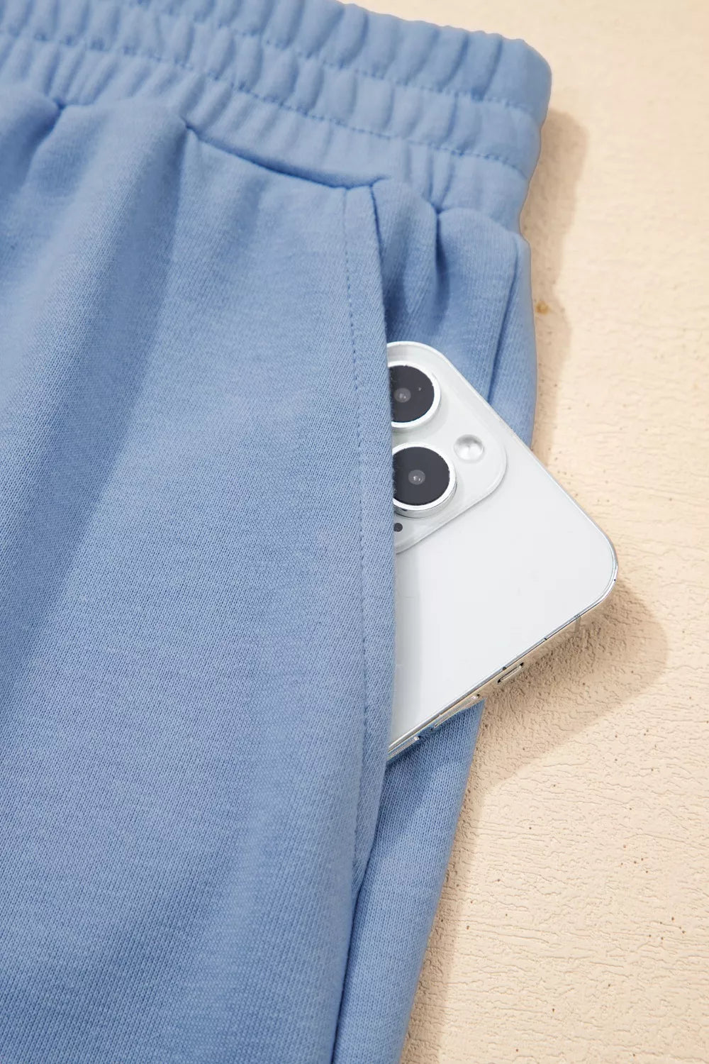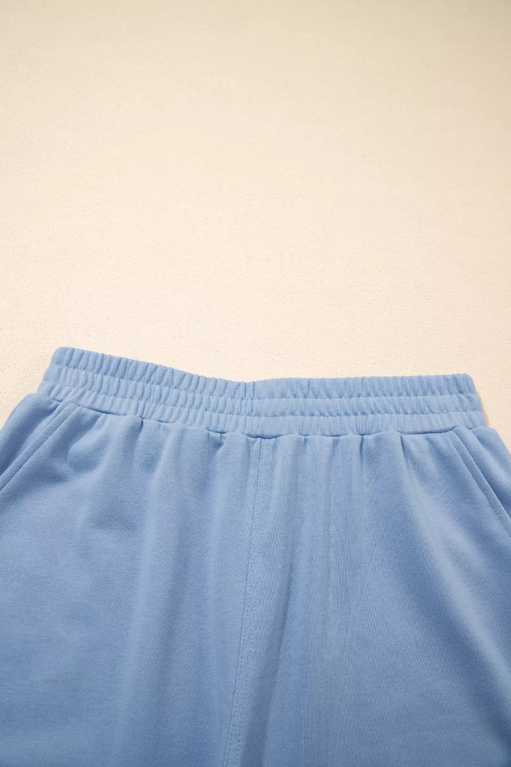 Solid Color Contrast Textured Patchwork Raw Edge 2pcs Short Set