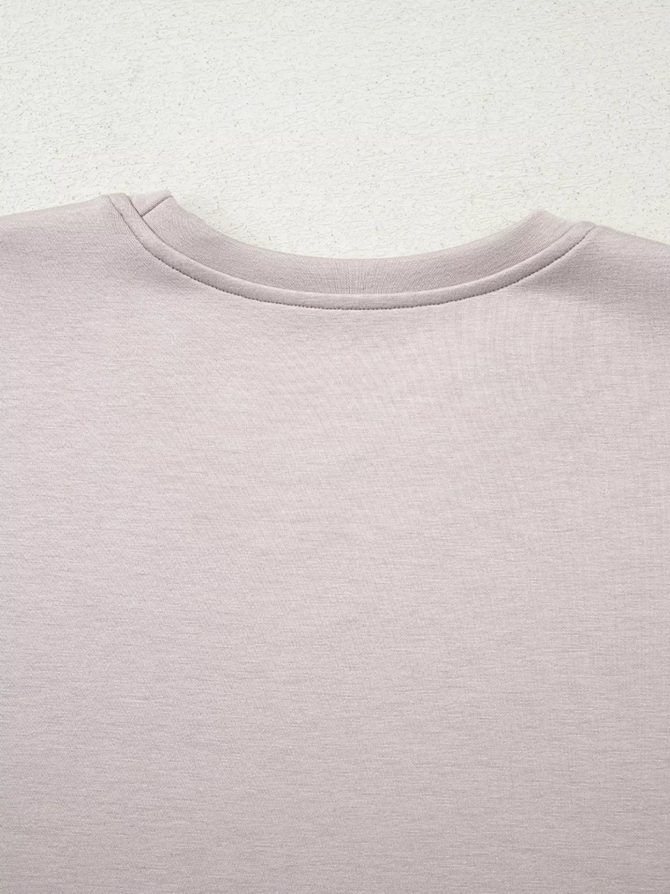 Solid Color Drop Shoulder Pullover and Drawstring Mini Skirt 2pcs Outfit