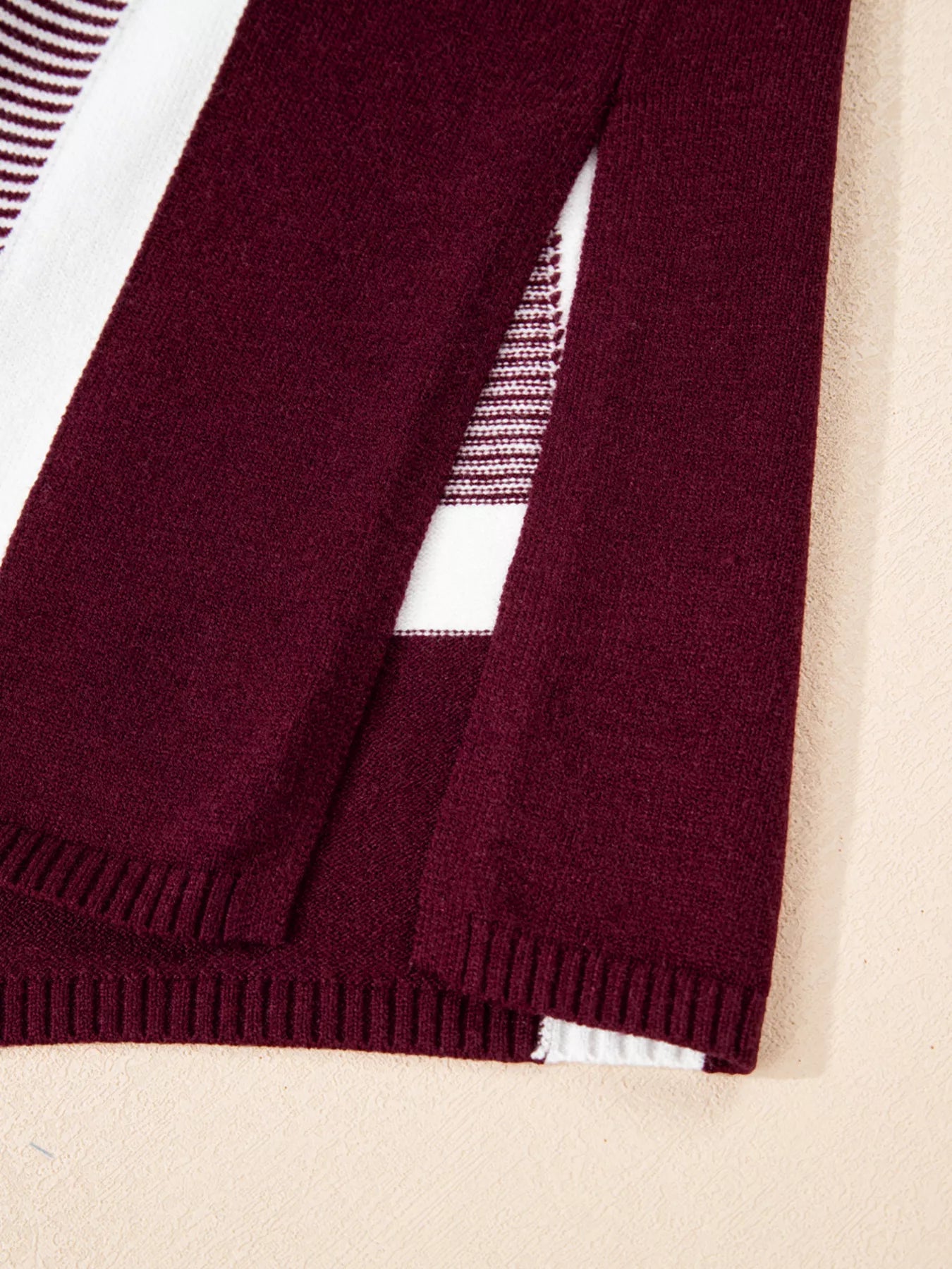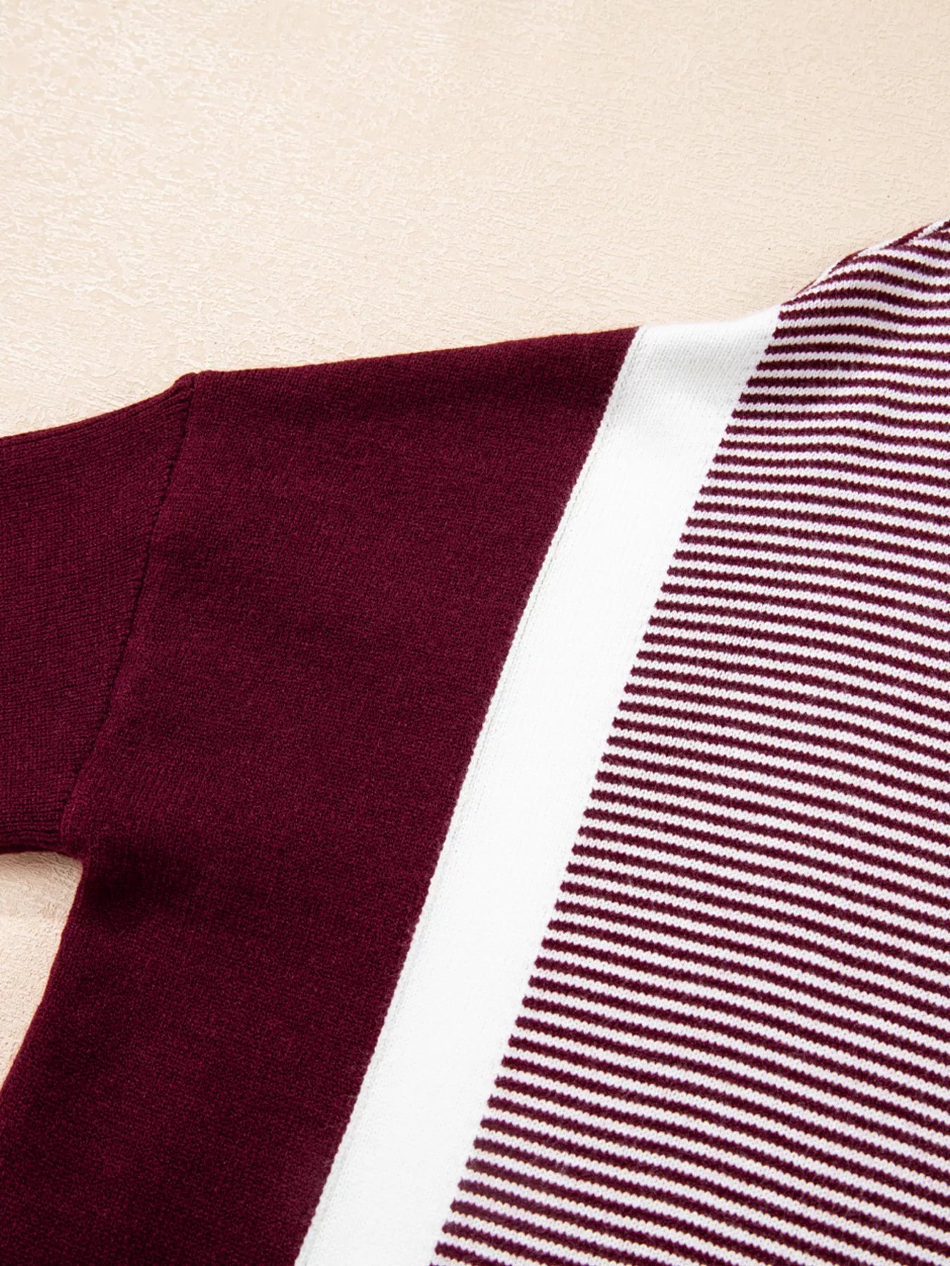 Stripe Color Block Patchwork Dolman Oversize Tunic Sweater