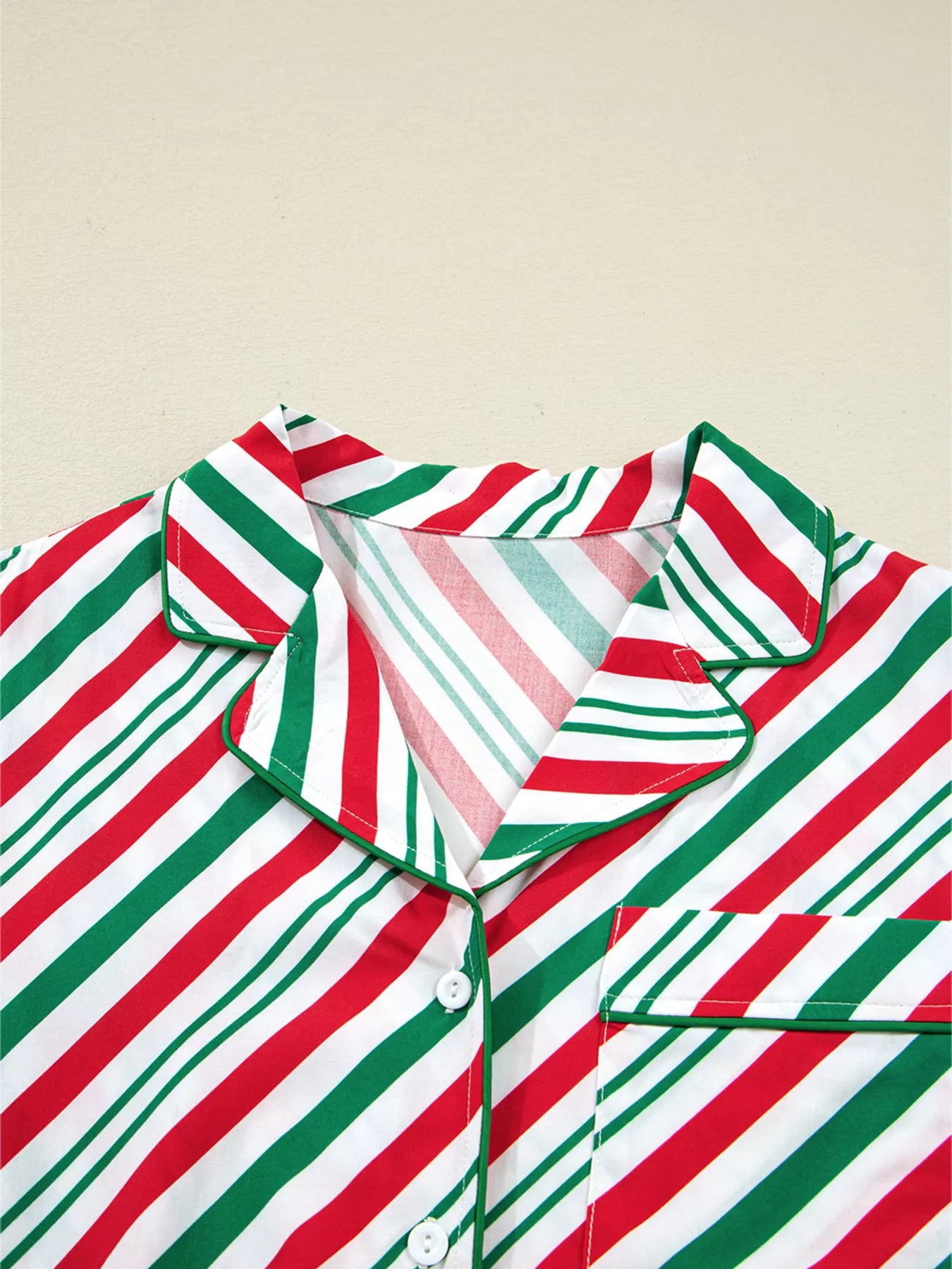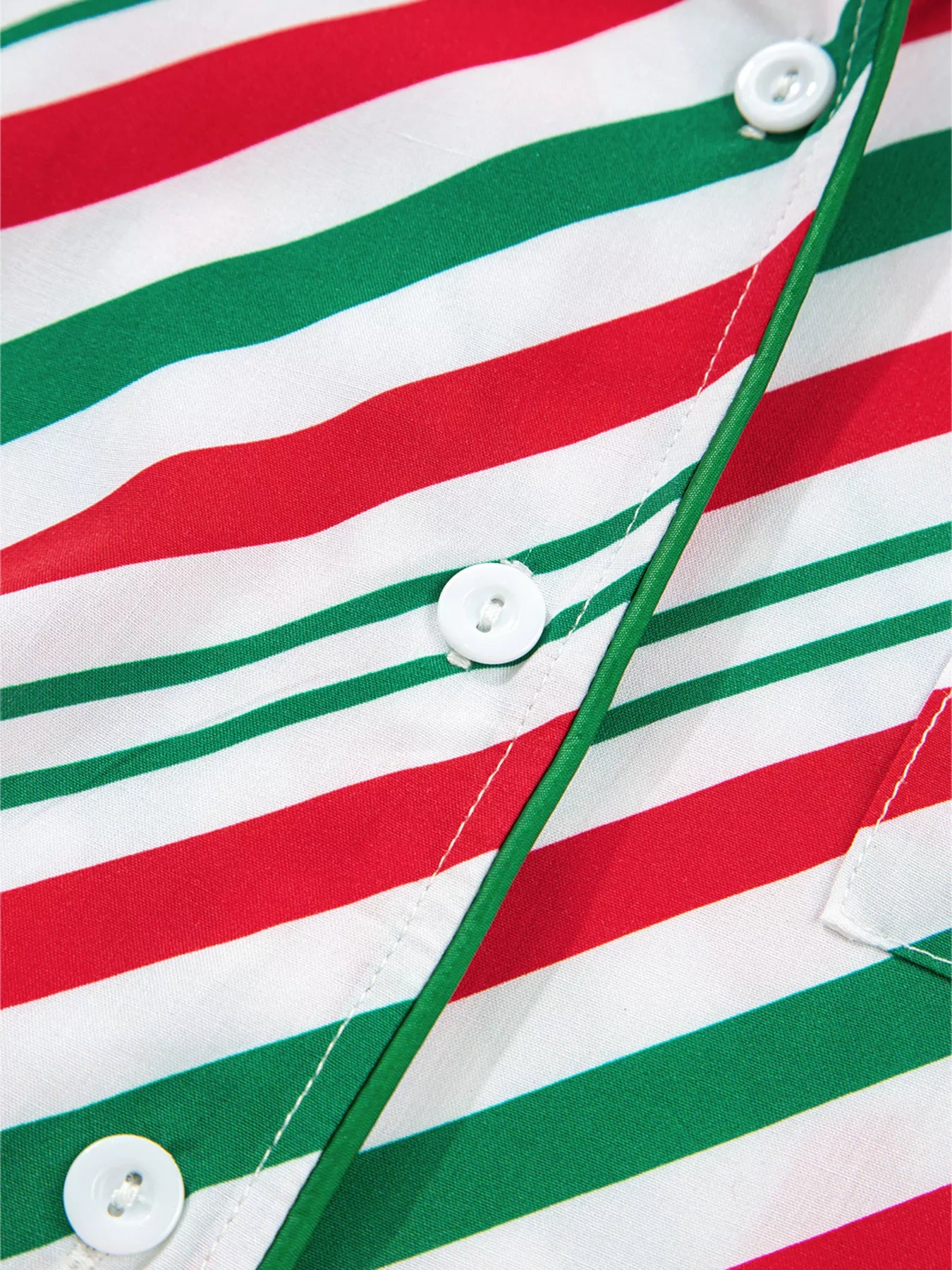 Stripe Contrast Velvet Ribbon Knot Christmas 2pcs Pajama Set