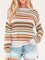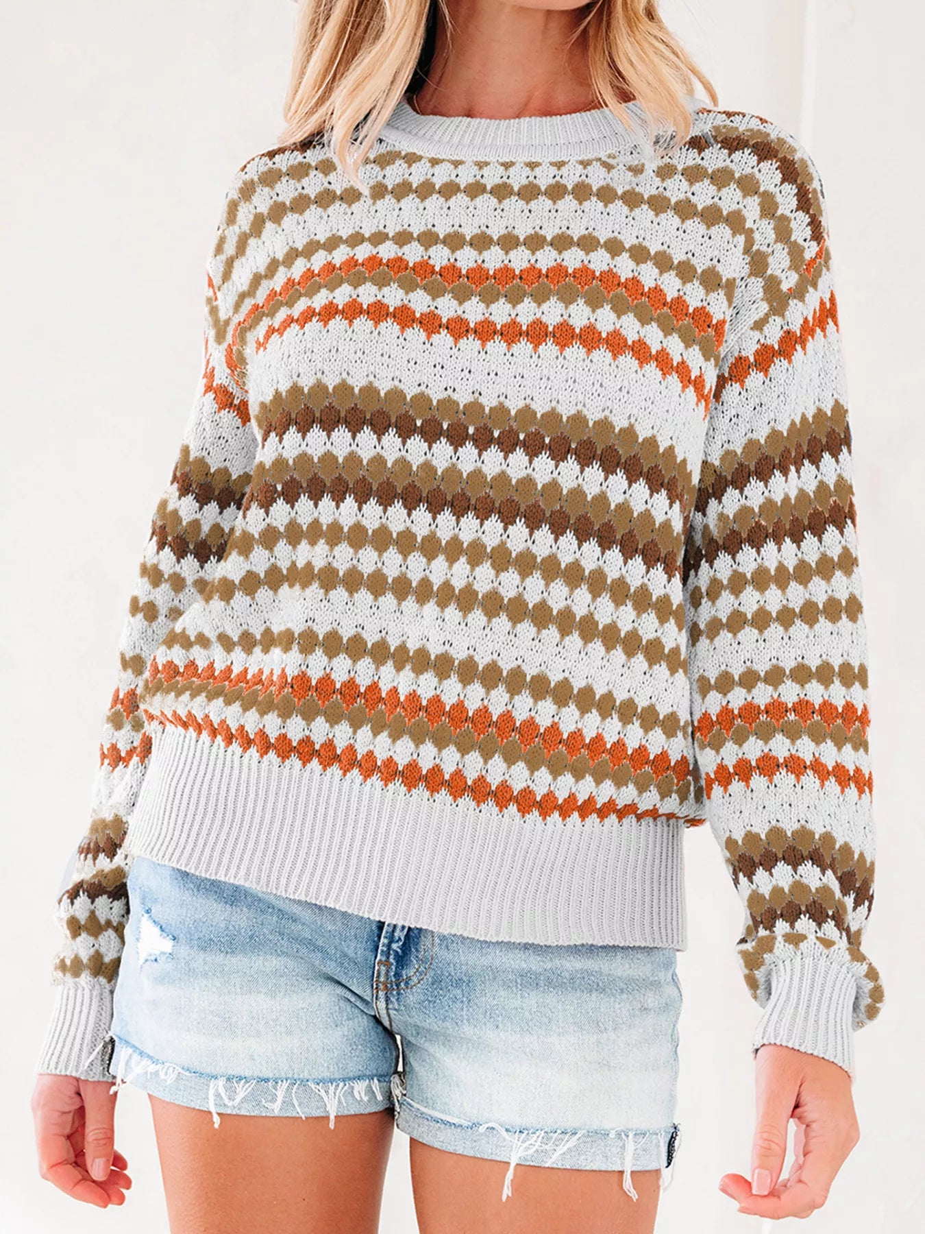 Stripe Eyelet Patterned Drop Shoulder Sweater