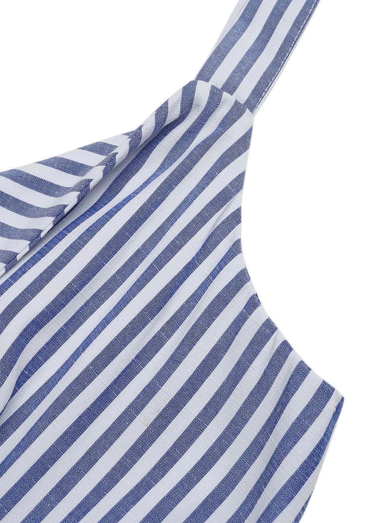 Striped Cutout Knot Front Wide Leg Jumpsuit