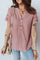 Textured Embroidered Half Buttons Short Sleeve Blouse