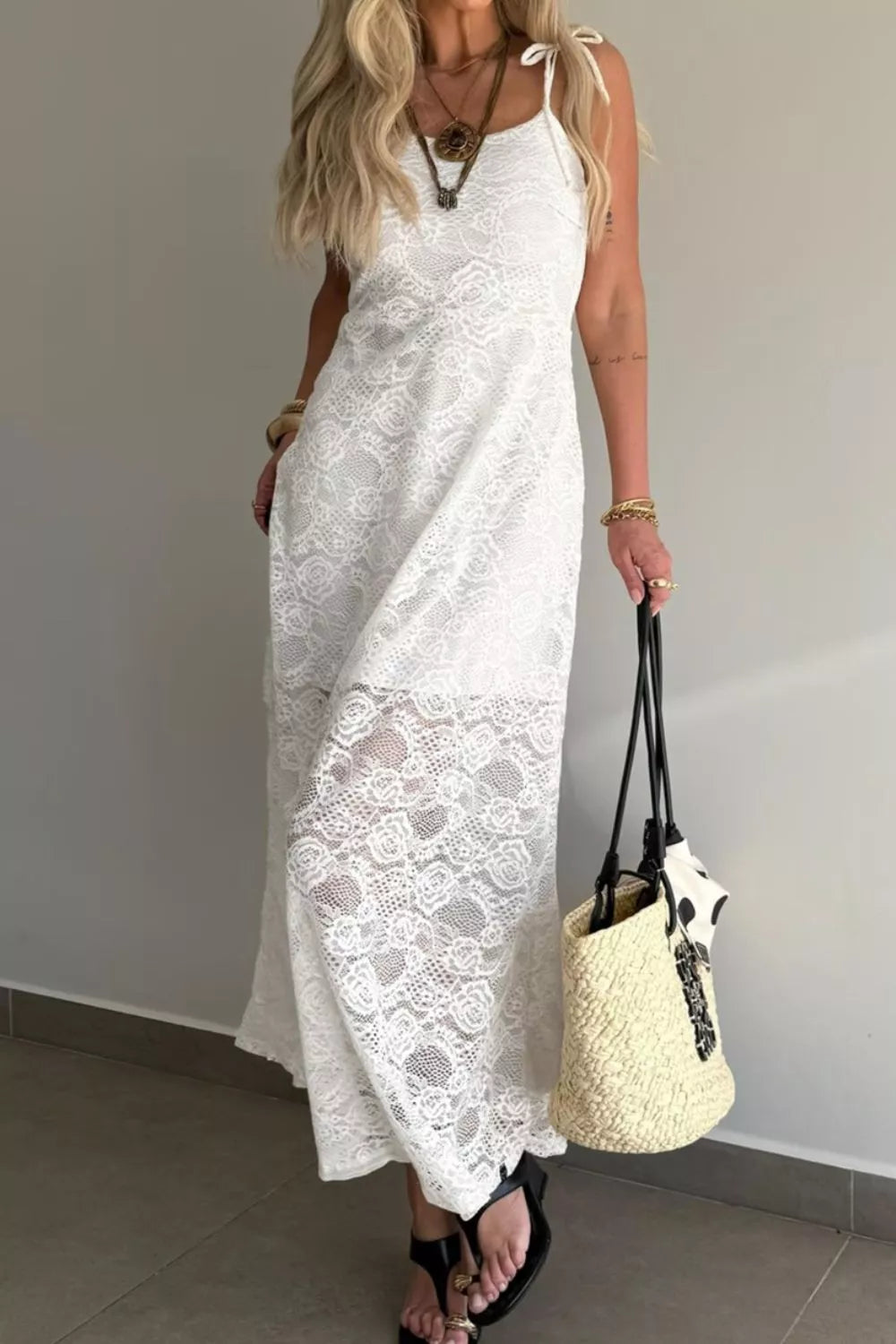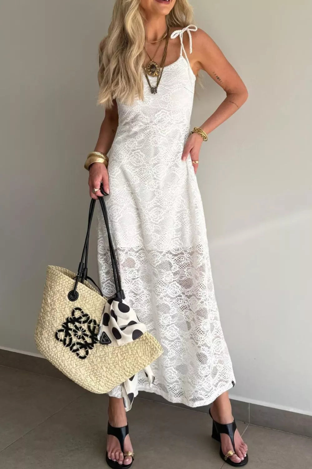 Tie Spaghetti Straps Floral Lace Overlay Dress