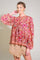 A printed woven top featuring round neckline with front tie and long sleeve