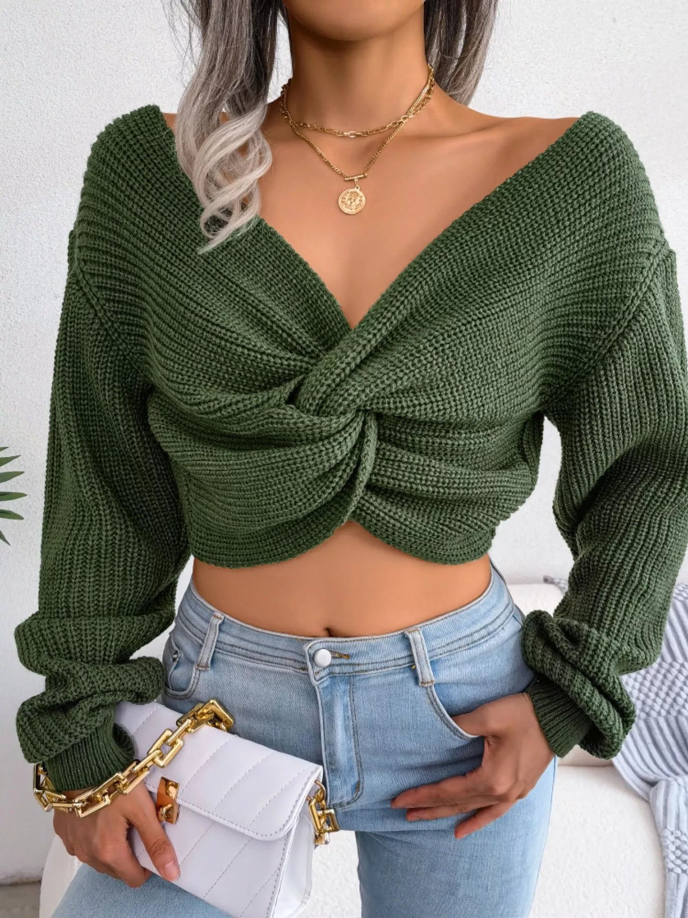 Twisted Front Cropped Sweater