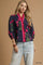 Umgee Floral Print Ruffle Trim Puff Sleeve Blouse