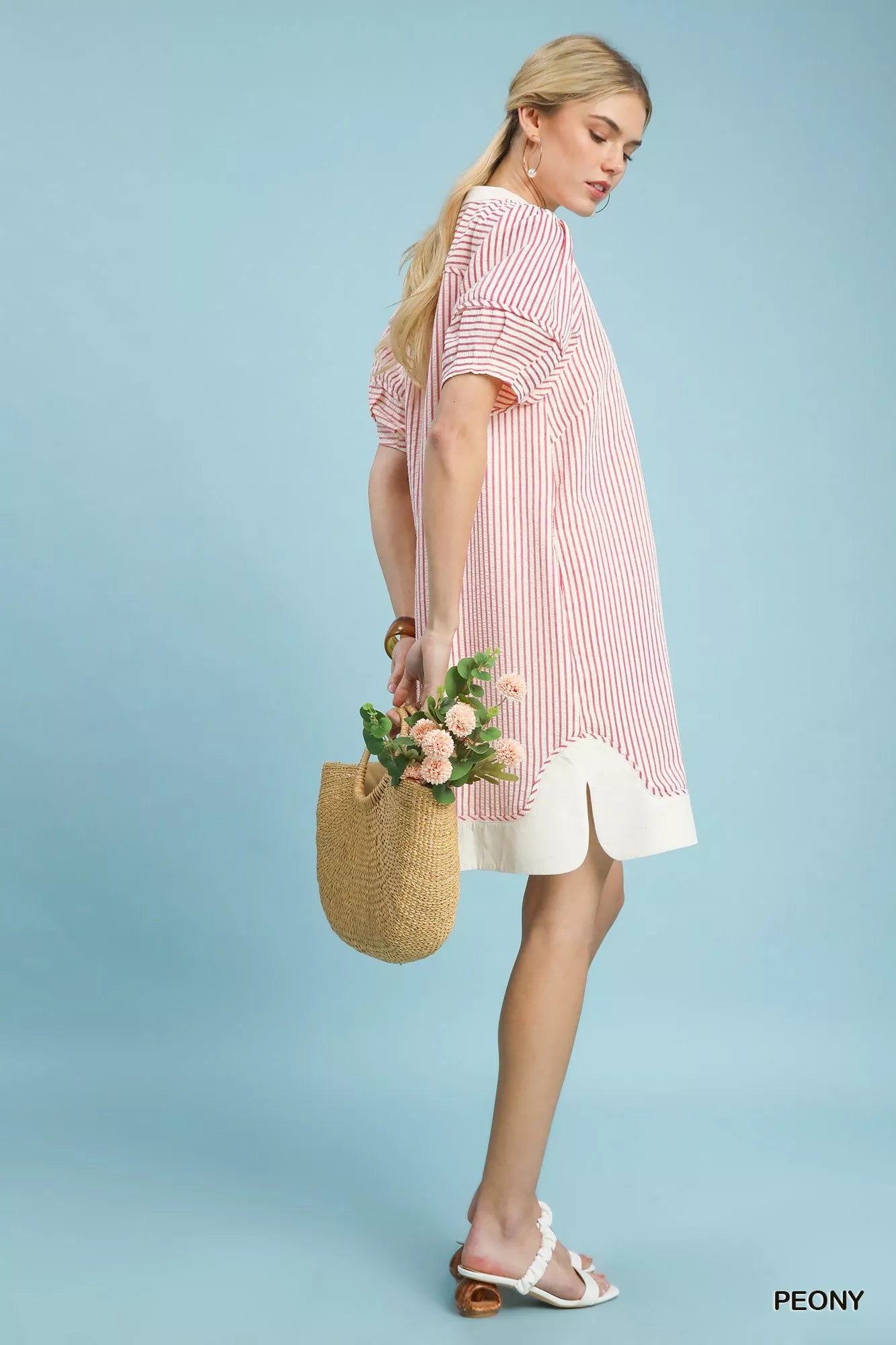 Umgee Pinstripe Shift Dress with Contrast Trim