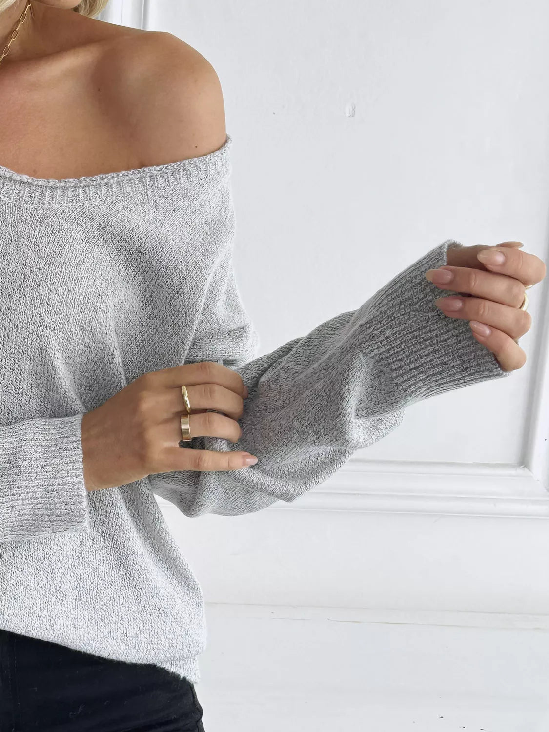 V-Neck Long Sleeve Knit Top