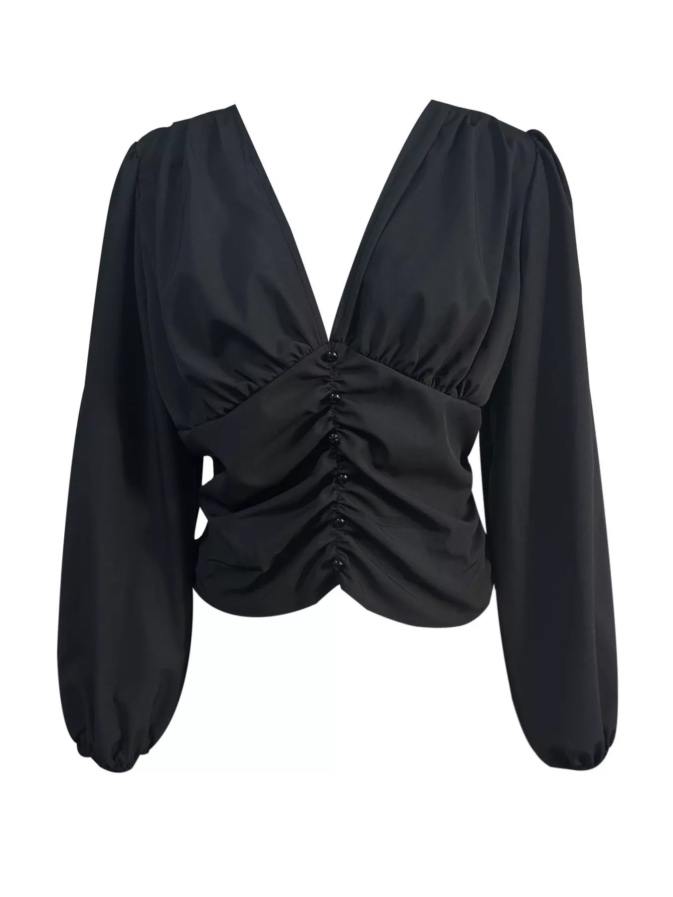 V-Neck Ruched Long Sleeve Blouse