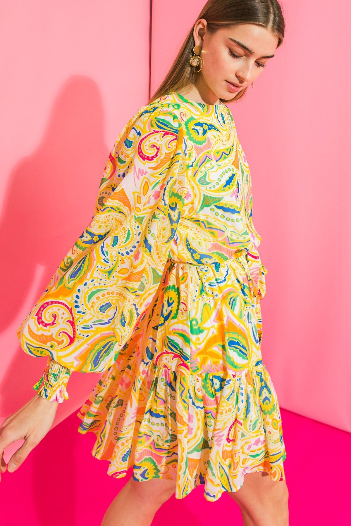This elegant WISH FOR MORE WOVEN MINI DRESS offers a stylish take on classic femininity. Crafted with a lightweight woven fabric, it features a round neckline, peasant sleeve, and smocked cuffs for a tailored look. Self-ties at the waist, a ruffled hemline, and back keyhole closure complete the design. A sophisticated piece that embodies timeless beauty.